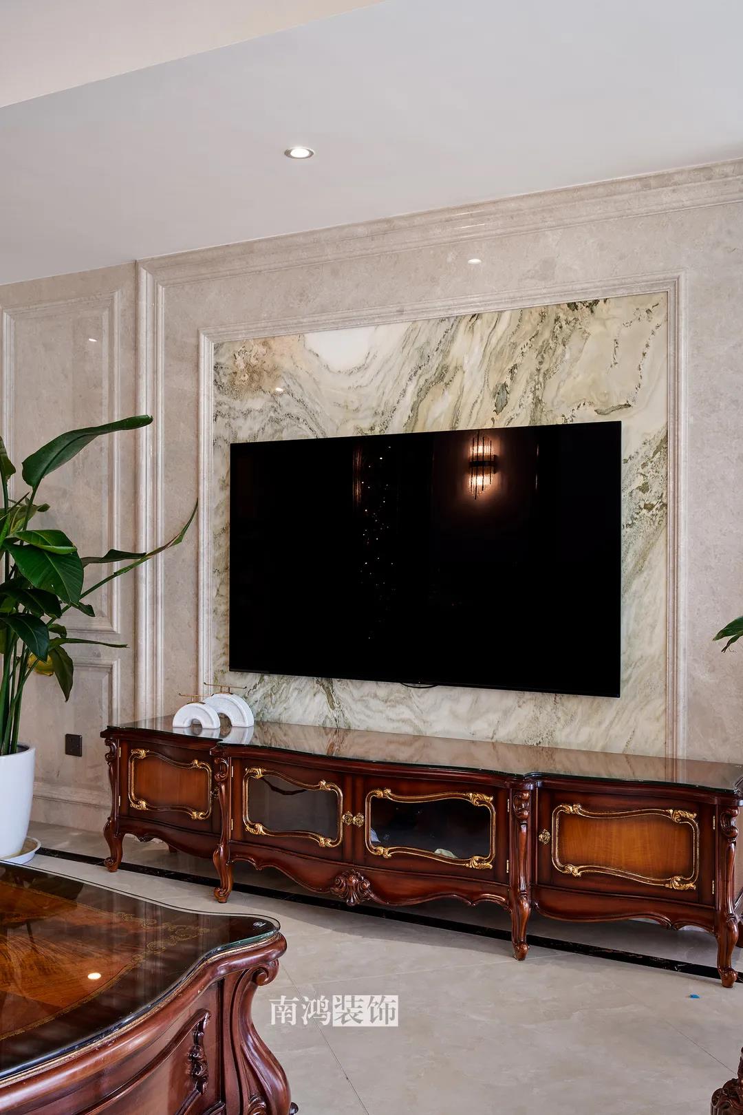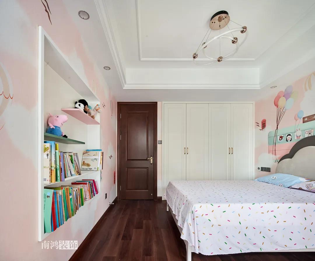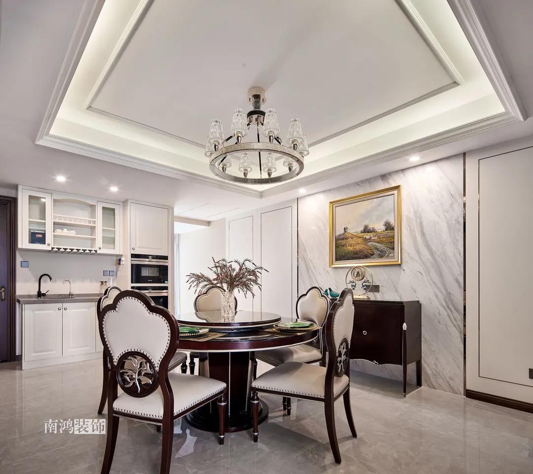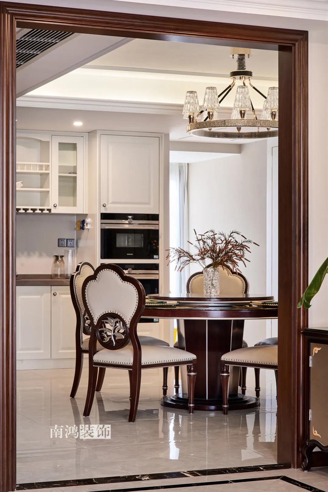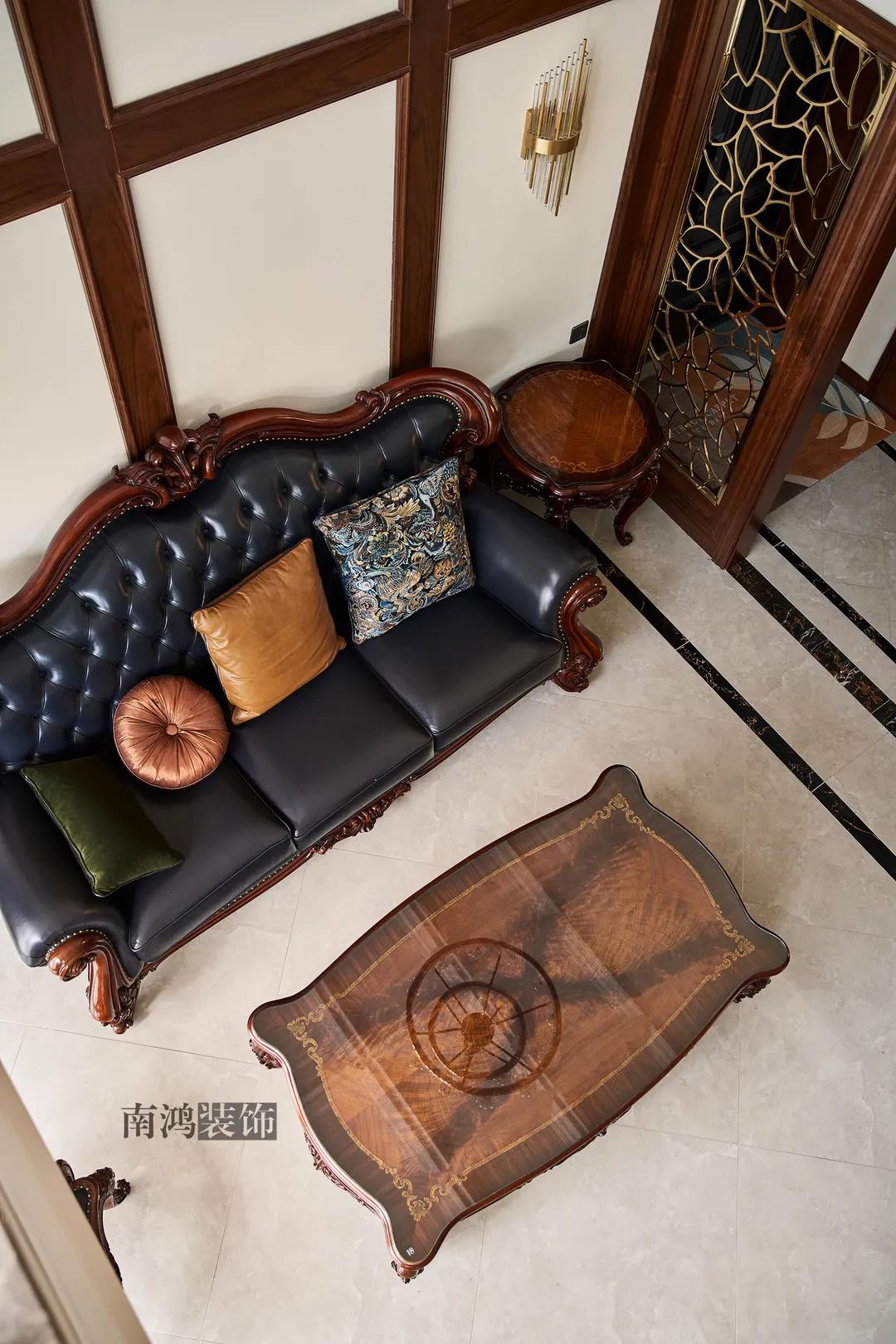 全屋雜糅了新古典、美式、中式、現(xiàn)代等風(fēng)格的軟裝陳設(shè),不同的空間有著不同的空間表情,想必每日住著看著都能感受到不一樣的趣味~ 01. 玄關(guān) ENTRANCE 正對入戶口的玄關(guān)走道,盡頭處用矮柜輔以金框風(fēng)景畫和擺件打造端景,實現(xiàn)高雅藝術(shù)表達(dá)。 02. 客廳 LIVING ROOM 轉(zhuǎn)入客廳,挑高的空間氣勢十足。軟裝材質(zhì)、色彩選擇,傳達(dá)出濃厚的歷史文化底蘊(yùn),契合業(yè)主對高檔格調(diào)的追求,同時在硬裝上簡化線條,空間更加明晰可觀。 為了滿足大家庭的活動需求,設(shè)計師將原有的客餐格局重新規(guī)劃,一層客廳在最大范圍內(nèi)打開,讓光線與氣韻流通,形成一個視野開闊、采光良好的會客休閑領(lǐng)域。從這里可以看到二樓孩子的學(xué)習(xí)讀書角。 5.4米的沙發(fā)背景墻自然成為整個客廳的視覺焦點,設(shè)計師選擇了護(hù)墻板的形式,木板分割出的造型有助于進(jìn)一步拉伸層高,大氣高級的效果貫穿一二層空間。 客廳是家庭活動的重心,在裝飾上力求凸顯典雅莊重的特點。華貴的深色沙發(fā)靠墻安放,金屬鏤空隔斷在壁燈的照耀下泛起光澤,光滑的茶幾表面折射著溫度,優(yōu)雅利落的奢華感,從種種細(xì)節(jié)間流露出來。 03. 餐廳 DINING ROOM 家里人口較多,基于實際需求考慮,使用圓桌是最合理的選擇。開放式操作臺兼做餐邊柜,中西結(jié)合的餐飲習(xí)慣也在這里得到了充分的體現(xiàn)。 04. 廚房 KITCHEN 廚房選擇了傳統(tǒng)的封閉式U型格局。U型廚房可以利用三面墻壁做出充足的儲物空間,動線也很流暢,而且這種封閉式的設(shè)計,最大程度地避免了外部用餐空間被油煙侵?jǐn)_的問題。 05. 樓梯 STAIRS 木白配色的樓梯低調(diào)地串聯(lián)起上下層空間,原木質(zhì)感給予家以寧靜,墻上一幅山水畫占據(jù)住了視覺焦點。 06. 臥室 BEDROOM 主臥面積寬敞,功能全面,衛(wèi)生間衣帽間休閑區(qū)一應(yīng)俱全。 睡眠區(qū)風(fēng)格莊重,儀式感足,皮革硬包背景搭配華貴家具,細(xì)節(jié)處倍感精致。 主臥的休閑區(qū),天氣好的時候,柔和的光線透過窗子灑進(jìn)陽臺,優(yōu)雅的主人坐在舒適的躺椅上靜靜品茶、看書,理想中的歲月靜好似乎照進(jìn)了現(xiàn)實。 女兒房,顏色飽和度都很低,一種純粹的設(shè)計和生活方式就這樣被喚醒。 二樓兒童房。兒童房是孩子對色彩、形狀產(chǎn)生最初認(rèn)知的地方,所以在設(shè)計上不僅要注重實用性,更要注重趣味性。童趣主題墻面、云朵狀的床頭、可愛的小掛衣桿,能讓小朋友在這里充分探索未知、創(chuàng)造快樂! 07. 露臺 TERRACE 露臺存在的意義,大概就是:清晨的時候泡上一杯茶,等待陽光喚醒頭腦;傍晚的時候,可以在這里享受晚風(fēng)、星月,體驗都市生活中難得的一刻放松。再多養(yǎng)幾盆花花草草,讓美好盡情綻放~ 08. 衛(wèi)生間 BATHROOM 具有現(xiàn)代感的主衛(wèi)空間使用灰黑色主調(diào),懸空式的長臺盆柜輕盈時尚,燈光布置層次分明,功能性與美感得到了統(tǒng)一。 客衛(wèi),玻璃淋浴間實現(xiàn)簡單的干濕分離,金色的水龍頭與臺盆柜把手、落腳更顯精致。 平面戶型圖 -- ·項目信息· 項目名稱:金都華庭 建筑類型:復(fù)式 設(shè)計風(fēng)格:混搭 項目地點:中國·杭州 項目面積:230㎡ 項目服務(wù):設(shè)計·施工·硬裝·軟裝 全案設(shè)計 設(shè)計單位:浙江南鴻裝飾 施工單位:浙江南鴻裝飾