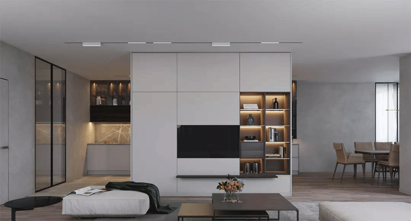柜體如果全做開放式,會非常考驗(yàn)主人的搭配功力,搭配不當(dāng)只會增添視覺疲勞感;全做封閉式,可能會略顯單調(diào)。因此“封閉”與“開放”做3:1的比例最好。
