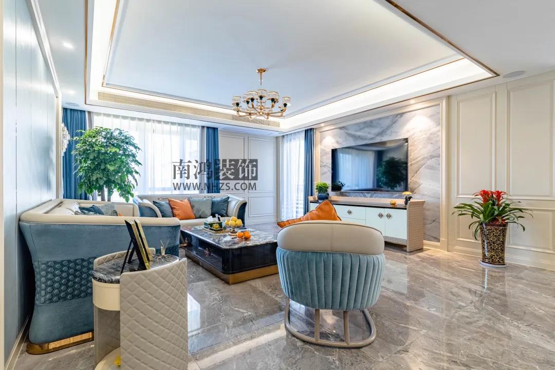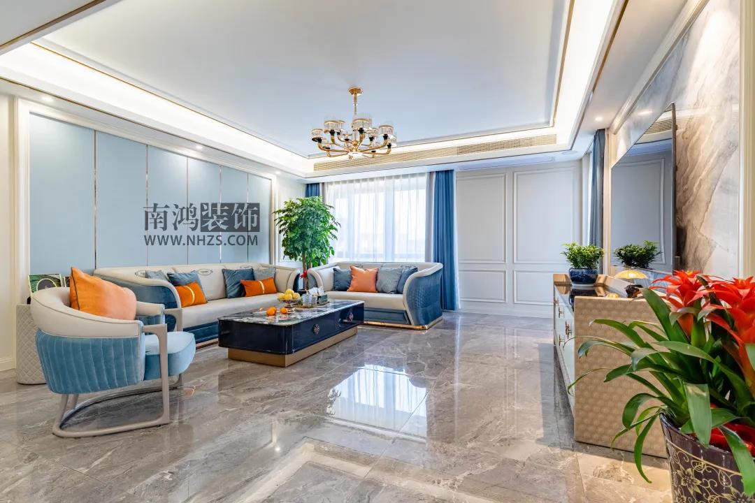 戶 型 圖 設(shè)計(jì)說明: 1、進(jìn)門處拆除左墻,使父親房和客衛(wèi)干區(qū)面積增大,并改變客衛(wèi)進(jìn)門位置,使得餐廳更加完整; 2、過道上的走入式衣帽間改成了兩個(gè)背靠背的柜子,不僅使房間增大,還多了一個(gè)書柜的空間; 3、母親房原本的房門直對過道,后更改了位置; 4、主臥改了衣帽間的朝向和主衛(wèi)的墻,在保證空間的情況下滿足了業(yè)主儲(chǔ)物需求。 客 廳 客廳的地面選用深灰色拋釉磚,大理石材質(zhì)的電視背景墻與之呼應(yīng)。大面積藍(lán)色系的運(yùn)用,使客廳空間透出清爽自然的氣息,背景墻、吊頂和家具中都加入了金色元素,透出優(yōu)雅輕奢的味道。 沙發(fā)結(jié)合了皮革、布藝和絨面,溫暖舒適。桔色的抱枕作為跳色,為這方空間注入了活力和趣味,角落里的大盆綠植增添生氣。 客廳望向玄關(guān)視角。通透的空間感與視覺感令人無比舒適~ 餐 廳 餐廳延續(xù)了客廳的硬裝風(fēng)格,與客廳之間毫無阻礙,動(dòng)線流暢,開敞的空間還能帶給居住者更多有關(guān)美食的想象。 餐廳背景僅用一幅簡約藝術(shù)畫裝飾,兩側(cè)設(shè)計(jì)入墻式餐邊柜,實(shí)用且大方,并利用后陽臺(tái)的位置開辟了一個(gè)休閑吧臺(tái)的空間。 明黃的花色在這個(gè)純凈的視界中散發(fā)出鮮明而絢麗的審美意涵,讓屋主在芳香中品嘗人生百味~ 主 臥 主臥背景墻風(fēng)格與客廳相似,又借暖色的床品顯現(xiàn)出空間個(gè)性,淺色木地板顯得溫潤而舒適。房間中還專門擺放了床尾凳,從細(xì)節(jié)上進(jìn)一步提升空間品質(zhì)。 兒 童 房 兒童房背景墻選用淺藍(lán)色墻漆裝飾,搭配多彩的窗簾和純白的高背床,簡約中勾勒出活力色彩。 兒童房進(jìn)門一側(cè)多放了一個(gè)書柜,結(jié)合另一側(cè)的學(xué)習(xí)區(qū),充分滿足孩子讀書時(shí)的日常需求。 衛(wèi) 生 間 次衛(wèi)一,做了干濕分離,暖灰色的墻磚與地磚呼應(yīng),視感舒服,高級(jí)灰的浴室柜挑空設(shè)計(jì)并點(diǎn)綴上金屬細(xì)節(jié),時(shí)尚而前衛(wèi)。 次衛(wèi)二,采光充足,光線明亮,深藍(lán)的衛(wèi)浴柜搭配金色拉手,顏值滿分。 | 地址:水景城豪苑 | 面積:250㎡ | 風(fēng)格:輕奢 | 設(shè)計(jì)施工:浙江南鴻裝飾